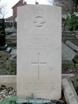 | 17 | Martin | Jasper | Sergeant | 1595881 | Age 20 | British | Wireless Operator/Air Gunner | RAFVR | Bomber Command | 5LFS (Lancaster Finishing School). 5 Group | 1945-01-28 | Lancaster | III | LM308 | - | RAF Syerston, Nottinghamshire | 1 | Training | 5 Lancaster Finishing School. The crew of Lancaster aircraft LM308 were on a night training flight when they crashed near the Elm Tree Hotel, Hoveringham, Nottinghamshire, England. W/O Richard Barlow Rathbone, FSs H.M. MacKenzie, John H. Reid, J.A. Emerson, Sergeant J.F. Fitzgibbon (all RCAF) Sgt Albert Mercer, Sgt Jasper Martin (both RAFVR) were killed. See Archive report for further details | Killed | Castleford Cemetery (Whitwood). Sec. N. Cons. Grave 923 Grave inscription: 'Sleep On, Dear One You Did Your Best God Thought It Best To Give You Rest'. | ![]() | Born in 1925 at Castleford. Son of Samuel and Emma Louisa Martin, of Cutsyke, Castleford, England. Grave inscription: 'Sleep On, Dear One You Did Your Best God Thought It Best To Give You Rest'. | ||||||