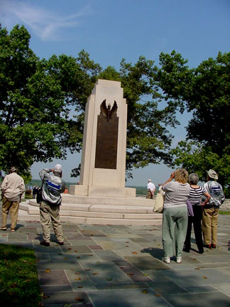 This monument overlooks the site of the Wright Bros. field where they did their experiments in 1904-5.
