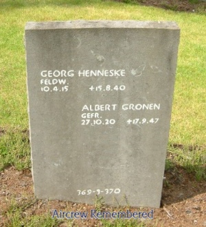 was buried in Bridlington Cemetery on 19 August, 1940; it has since been re-interned in the German Military Cemetery at Cannock Chase.