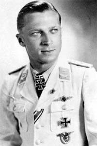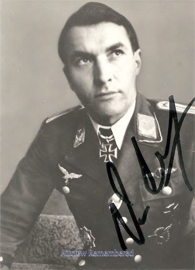 | 5 | Herrmann, Hans Joachim 'Hajo' | Obstlt | 8/1/1913 | Kiel | 9 | III/KG-4 (9/39 Poland), Stfkpt 7/KG-4 (7/40 Schiphol), Stfkpt 7/KG-30 (4/41), Kdr III/KG-30 (7/42), 9th Flieger Div., Kdr JG-300 (6/43), Insp.of Air Def. | Ju 88A-1 Werk # 5128 "5J + AR" (gear collapsed 10/19/40) in KG-4, Ju 88A-4 "4D + AD" & "4D + AR" (11/41 in KG-30), Bf 109G, Bf 109T-1 (lost 8/20/43), Fi 156C-3 Werk # 1297 (9/5/43, WIFA, crash), Fw 190A-6 Werk # 550445 "Green 1" (lost 8/24/43) & Fw 190A-4 (lost 9/5/43) | ![]() RK(10/13/40) EL(8/2/43) S(1/23/44) ![]() Spanish Cross ![]() Deutsches Kreuz - Gold(6/5/42) EP(9/28/40) EK 1 & 2 Wound Badge Bomber & Ftr Oper.Clasps | All 9 were RAF Bombers. One such bomber believed to be a Short Stirling III BK718 "WP-M" of No.90 Sq., lost the night of 3/4 July, 1943, target Köln. It's Flt Engr, Sgt Hugh Murray, of Fife Scotland, was KilledInAction (KIA), and buried Overloon War cem Noord Brabant, Neth,. location III.A.I..The inventor of the "Wilde Sau" System, 26 June, 1943. EL 8/2/43. The use of single-engine fighters for night operations. Very costly in terms of pilots and AC. Herrmann came to fighters from bombers. The Bf 109T-1 (questionable) was the type destined for use on the carrier Graff Zepplin, however this project was cancelled by order of Hitler. In January, 1944, he was appointed Kdr of Jagddivision 30, over all three of the Wilde Sau units, 300, 301 & 302. In March 1945, he commanded Sonderkommando-Elbe, a Bf 109 unit whose purpose was to ram Allied bombers. Only about 24 successful attacks were recorded. About 370 combat missions, serving in Spain, Poland, Norway, France Malta and Greece, before founding the Wilde Sau Units. Sank 12 Soviet convoy ships, about 65,000BRT. Also known to have flown Fw 190A-5 "Black 1" as Kdr JG-300. Spent ten long years in Russian captivity. Released with Hartmann, Graf, Wiese and Hans Baur. Deceased 11/5/2010 Düsseldorf.