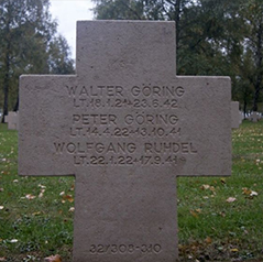 | 100 | Göring, Peter Hermann Ludwig | Lt | 1922/04/14 | Weissenfels/Saale | 1 | LKS 2 FFS A/B Berlin Gatow (-01-/40 CK), Erg./JG 26 (08/41), Stab/JG 26 (10/41 Channel) | Bf 109 E-7 Werknr 3787 (crashed near Hazebrouck due to pilot error, CK), Bf 109 F-4 Werknr 8288 (lost 13/10/41) | EK 2Wound Badge | KilledInAction (KIA) 13 October, 1941 when he was hit by his Blenheim targets turret gunner at Samer/Hubersent and crashed to his death. The Blenheim was from RAF No. 139 Squadron. WIFA 30 August, 1941 in his E-7 when he crashed near Hazebrouck on a combat sortie. The crash was attributed to pilot error. His one victory was a Blenheim on 13 October, 1941, the date he was killed, not sure if it was the one that hit him. Peter was the nephew of the Reichmarshall, had finished his advanced training three weeks earlier and was flying wing for Adolf Galland on this day. Burial War Cem. Bourdon France, 32/8/309. Alternate spelling: Goering. Added: Together with Eberhard Kuhnt on LKS 2 Berlin-Gatow in 1940 (CK) Courtesy Stefan Kuhnt, CK | Courtesy CK |