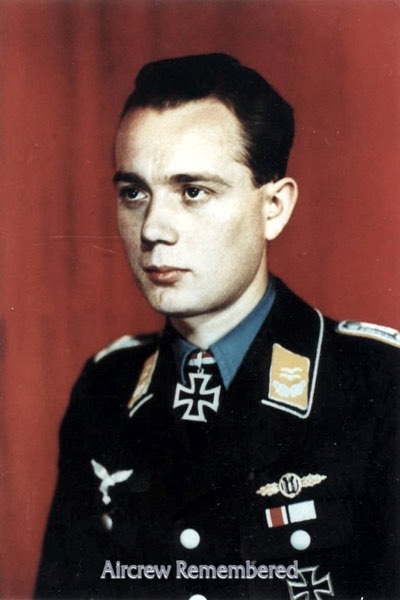 | 95 | Schmidt, Dietrich 'Dieter' | Hptm | 6/17/1919 | Karlsruhe | 39 | III/NJG-1, Stfkpt 8/NJG-1 (5/43), Stfkpt 7/NJG-1, IV/NJG-1(11 or 12 Stf 4/44), JG-7 (wars end) | Bf 110, Ju 88, Me 262 in JG-7 | RK(7/27/44)![]() Deutsches Kreuz - Gold(10/1/44) EP(4/24/44) EK 1 & 2 Night Fighter Operational Clasp | 171 combat missions, all victories were Night victories. Several multiple victory nights. One known victory, a Halifax northeast of Echterdingen on 25 March, 1943. A Lancaster and a Wellington on 5 May, 1943, opposing the Dortmund raid. Another Lancaster on 14 May, 1943. Another Lancaster on 13 June, 1943. A Lancaster W of Cloppenburg on 16 December, 1943, still in 8/NJG-1. A Mosquito 8 km NW of Klamp on 14 January, 1944. A Lancaster 1 km SE of Longwiller on 15 March, 1944. A "4 mot" at Dijon on 27 April, 1944. A triple victory on 4 May, 1944; all "4 mots" in the St. Dizier area. A "4 mot" S of Amsterdam on 22 May, 1944. A "4 mot" 5 km N of Ibbenbüren on 23 May, 1944. A double victory on 23 May, 1944; a Lancaster & a "4 mot" into the North Sea. A Lancaster 50 km W of Duisburg on 21 July, 1944. A 2nd Lancaster, same day, 30 km NW of Volkel. A "4 mot" W of Duisburg on 18 December, 1944. A Lancaster of RCAF No. 434 Sq. at Pfaffenhausen, E of Frankfürt on 16 January, 1945. His R/O Kurt Schönfeld. On a History Channel program "War in the Air", his name is stated as Dietrich Schmidt-Barbo. Deceased 6 March, 2002 Hofheim am Taunus (P. Bastin). | ![]() ![]() | Archive Report HX189 Lancaster LL678 Operational Record | |