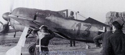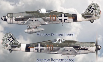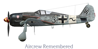 | 6 | Schulwitz, Gerhard "Bubi" | Lt | 1921/09/22 | 9 | 10./JG 26 (joins 05/43), 8./JG 26 (04/44), 6./JG 26 (06/44), 3./JG 26(09/44), 7. & 8./JG 26 (10/44), 5./JG 26 (02/45) | Fw 190 A-8 "Yellow 10" Werknr 170335 (lost), Fw 190 D-9 (lost 03/45) | probably EP EK 1 & 2 ![]() probably Fighter Operational Clasp in Gold | Bodenplatte pilot in 8./JG 26. A popular and gifted pilot, he was KIC 25 March, 1945, in a collision in his D-9 with his wingman, Uffz Hermann Kühn, after take-off for a transfer flight. Kühn was attempting a dramatic exit on a short airstrip at Nordhorn! Shot down in "Yellow 10" w/o injuries on D-Day by naval gunfire. Listed as MIA briefly after this encounter. One known victory, a Spitfire at St Pierre-Capelle on 24 June, 1943. His 2nd, a B-17 SE of Boulogne on 7 January, 1944. His 3rd, a B-24 (HSS) SW of Lüttich, 12 April, 1944. His 4th & 5th, both P-51s within seconds at Bacholt on 17 September, 1944. His 6th, a P-47 near Mönchen-Gladbach on 28 February, 1945. His 7th, a P-47 of 366FG at Wallach, near Wesel on 9 March, 1945. His last two victories were Austers (L-4 or L-5) of the 47th FA, attached to the 5th Armd Div., on 17 March, 1945 in the Düsseldorf area, one piloted by Lt Kenneth Lund (Source: Nephew Richard Tiedeman). Schulwitzs remains were discovered in 1985 after his comrade, Werner Molge, showed a Dig Team the location of the crashsite. He is buried at Lingen Neuer Friedhof Reihe L Grab 22 (CK).