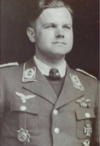 | 16 | Kaminski, Herbert | Maj | 1905/05/24 | Ohmswalde, Ostpreussen | 7 | Legion Condor (1937-38 CK), I./ZG 26, Stfkpt 2./ZG 26 (-05-08-/40), Kdr I./ZG 26 (05/41), Kdr I./JG 53 (11/41 Katwijk; 03/42 Med); 06/42 S.U.), Kdr II./ZG 76 (10/43-08/44), Kdr FFS A/B 41 Frankfurt (12/44 to end) | Bf 110 C-2 (05-08/40 CK), Bf 110 E "3U + AB", Bf 109 F-4 "<<+" Werknr. 7542 (30% dam, failed start, Gela) in I./JG 53, Bf 109 G-2 "Black <<" Werknr. 13481 (dam 24/07/42) | ![]() RK (06/08/41) ![]() Spanish Cross ![]() EK 1 (28/08/40) & EK 2 (08/06/40 CK) Wound Badge (15/05/40 CK) in Gold (18/02/44) ![]() Fighter Operational Clasp in Gold (03/01/42) Hungarian Voenen Orden "Za Hrabrost" IV stepen, 1 klas (29/05/42 CK) Italian Pilot Badge | A Destroyer pilot, he replaced von Werra on the Dutch coast as Kdr I./JG 53 after von Werras death in October 1941. He was awarded the RK for his successes against ground targets in Crete and in Russia. Wounded five times (badly WIA on 15/05/40 6 in attack by French fighters near Fumay-Givet, on 18/08/40 when ditched in Channel off Dunkirk after fighter damage by GC I/8 - rescued by Seenotdienst after drifting for 4 days, in 04/41 he was POW after being forced down over Serbia, repatriated 11 days later, WIA on 25/06/41when damaged by Flak near Bialystok, WIA on 24/07/42 in a landing accident in his G-2, believed to be engine failure or Russian flak damage on the northern outskirts of Taganrog, Ukraine. He opposed the 6 March, 1944 Berlin Raid while in II/ZG-76. After being Kdr II/ZG-76, he headed a pilot training school. About 300 combat missions. Five victories as Destroyer pilot. Two of his victories were in the East. One known victory, a Hurricane on 20 December, 1941. His 7th, a LaGG-3 on 28 June, 1942. Sometimes referred to as "the Last of the Prussians". Killed in an car accident at Garmisch 18 Jily, 1971. ![]() |
