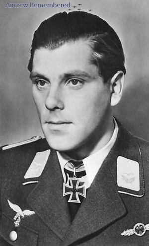 | 81 | Altner, Richard Herbert | Lt | 3/2/1918 | Naunhof | 25 | 5/NJG-3 (8/42), 2/NJG-3 (1/43), 3/NJG-5 (12/43 Lübeck), 8/NJG-5 (1/44), 10/NJG-11 (4/45 Burg) | Bf 110, Do 217, Ju 88, Me 262B-1a/U1 Wk# 111980 "Red 12", Me 262B-1a/U1 Werk # 110636 "Red 9" (lost 3/27/45, pilot error, bail safely; R/O Uffz Reinhard Lommatzsch KIC) and Ar 234 in NJG-11 in 1945 | ![]() Deutsches Kreuz - Gold(1/1/45) EP EK 1 & 2 Night Fighter Operational Clasp | One known victory, a Halifax 1 km SSE of Sonderborg on 19 August, 1942. Another, a Stirling on 18 January, 1943. A Wellington south of Tondern on 19 February, 1943. A B-17 NE of Gedser on 9 October, 1943. Downed a "4 mot" near Berlin on 16 December, 1943. One of these must have been "unconfirmed", since his 5th per OKL, was a B-24 on 4 January, 1944. A "4 mot" W of Paris on 8 June, 1944. a 2nd "4 mot" same day, 80 km N of Paris. A "4 mot" SSW of Paris on 10 June, 1944. Two more "4 mots" SW of Paris on 11 June, 1944. Another double on 13 June, 1944; both "4 mots" in the Lens-Arras area. Scored 5 victories, all Lancasters of RAF No. 619 Sq., within 30 minutes on one mission, 18 July, 1944, over northern France. One late victory, a Mosquito on 3 April, 1945. In the last days of the war, he used the Reinfeld autobahn as a runway during the day. On 7 May, 1945, from his last 262 base at Schleswig-Jagel, rather than waiting to surrender to the British, Altner simply got on his bike and pedaled home! | |||