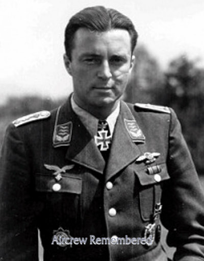 | 42 | Weigel, Kurt Heinz | Hptm | 10/29/1916 | Stettin | 4 | 6/KG-26 (4/40), Junkerswerke 1 (10/44), IV/NJG-6, Stfkpt 11/NJG-6 (3/45) | He 111H-3 Werk # 5614 "1H + DP" (lost 4/8/40), Bf 110, Ju 88G-6 Werk # 621077 "2Z + BV" (lost 3/5/45) | EK 1 & 2 Bomber & Night Fighter Operational Clasps | KilledInAction (KIA) 5/6 March, 1945 during aerial combat with an RAF Mosquito of No. 406 Sq., piloted by F/Lt McFadyen at Brünnstadt, near Gerolzhofen (Bolten). Added: Remaining crew (KilledInAction (KIA)): Ofw Herbert Milord (geb 1/6/20, Berlin), R/O; Fw Johannes Antoni (geb 7/27/21, Aue/Erzgebirge), Flt Engr., and Uffz Johann Graf (geb 5/23/22, Kleinserheim), Gnr.. The entire crew originally buried in the Evgl. Friedhof, Gerolzhofen (C.König). One known victory, a Halifax SW of Bingen on 22 December, 1944. A 2nd, a Lancaster SE of Stuttgart on 2 January, 1945. Bolten 4 victories. Added: Two additional victories: A "4 mot" S of Stuttgart on 2 January, 1945, and a Lancaster near Pauen on 2 February, 1945. On 8 April, 1940, he became POW, when his He 111 was sd by a Hurricane, piloted by Sgt Herbert J.L.Hallowes, of No.43 Sq.. Lt Weigel made a forced landing at RAF Wick airfield. Remaining crew: Ofw Bruno Rehbein, Obs (POW); Ofw Kurt Geerdts, R/O (KilledInAction (KIA), bur in a little-known CC War Cem 4/F/10) and Ofw Ernst Rost, Flt Engr (KilledInAction (KIA), bur CC War Cem. 4/F/13) (D.Drury). | | ||