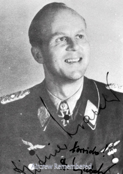 | 76 | Heiner, Engelbert | Oblt | 1914/06/05 | Krefeld-Fischeln | 15 | Legion Condor ('37-'38 Spain), 9./KG 27 (09/39), Pflugfiel pers pilot (Fall "41), He 111 H "L5 + KM" & L5 + IM" ('42-43') , 9./KG 27 (05/42), Nachtjagdschwarm Luftflotte 4 (12/42 to 08/43), IV/KG 27 as Instr, summer '44, Stfkpt 10./NJG 6 (10/44 - 03/45), 12./NJG 6 (03/45) | He 111 H-6 "1G + IT" Werknr 7370 (or 7348) (lost 11/08/42; fighters SW of Voronezb) in KG 27, Ju 88 G-6 "2Z + BV" (lost 19/03/45) | ![]() RK (09/12/42) ![]() Spanish Cross ![]() Deutsches Kreuz - Gold (21/08/42) EP (18/05/42) ![]() EK 1 & 2 Wound Badge ![]() Bomber Operational Clasp in Gold Foreign Pilot Badge | KilledInAction (KIA) 19 March, 1945, attacked by a British long range Night Fighter 8 km SW of Gelnhausen (Added: apparently W/O D Taylor of 157 Sqn, RAF, CK). Remaining crew (all KilledInAction (KIA)): Fw Max Rosenbaum, 2nd R/O and Uffz Edwin Hübner, Gnr. His longtime 1st R/O, Ofw Fritz Dietrich survived with serious injuries. 165 missions and 11 Night victories. One, a Lancaster of RAF No. 166 Sq., piloted by F/O Kemp, downed the night of 14/15 February, 1945, SW of Chemitz, Bowers/Lednicer, 11 victories. WIA the night of 10/11 August, 1942; sd by fighters while bombing Voronezh, Voronezh Oblast, Russia. Remaining crew: Ofw Friedrich "Fritz" Dietrich (MIA); Ofw Konrad Rieder, R/O (KilledInAction (KIA)) and Uffz Gerhard Botho Karl Wendt, Flt Engr (KilledInAction (KIA)). Rieder, the recipient of the Sp Cross, DK-G and EK 1 & 2, is commemorated in the War Cem. at Kursk-Besedino, Russia. Wendt is buried in the same cemetery, Blk 10, Row 25, Gr 1289 (D.Drury). Added: Crew Ofw Tatenhorst was known to have served exclusively on the crew of Oblt Engelbert Heiner between 2/42 to 8/43, performing re-supply and transport missions to Stalingrad and the Kuban Bridgehead prior to Heiner joining the Night Fighters (CKönig)