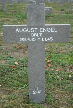| 26 | Engel, August | Oblt | 1913/04/02 | Darmstadt (CK) | 8./JG 11 (01/45 Zellhausen) | Bf 109 G-14/AS "Blue 14" Werknr 784958 (lost 01/01/45) | KilledInAction (KIA) 1 January, 1945 by Allied fighters of 366FG as he was strafing the airfield at Asch Belgium. He crashed his G-14 at Niel-bij-As Holland (DeSwart). Buried Ysselsteyn, Block I-2-41 (Rosseels).