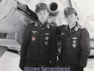 | 26 | Bernd, Rudolf | Oblt | 3/13/1921 | Brünn (Brno, Cz.) | 6/KG-6, Stab I/KG-6 (Channel) | Ju 88A-14 Werk # 144349 "3E + BB" (lost 1/18/43) | ![]() Deutsches Kreuz - Gold(5/17/43 Post.) EK 1 & 2 Bomber Operational Clasp | KilledInAction (KIA) 17/18 January, 1943; shot down by a Beaufighter of RAF No. 29 Sq., piloted by W/C Wight-Boycott, crashing in the Town End Recreation Ground, Caterham, Suffolk. Remaining crew: Ogefr M. Schieweck (KilledInAction (KIA)), Gefr K.H. Prophet (KilledInAction (KIA)) and Fw K.H. Schulz (POW).