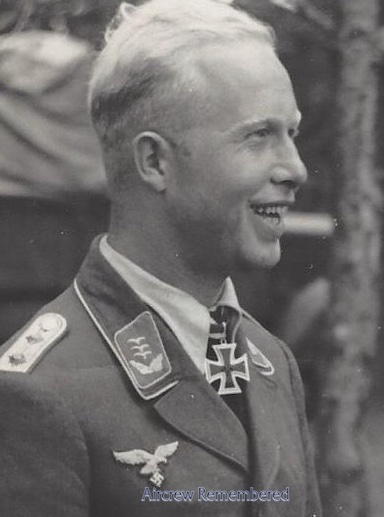 | 82 | Eckardt, Reinhold A.K. | Oblt | 3/26/1918 | Bamberg | 22 | I/ZG-52, 2/ZG-76 (5/40), 6/NJG-1 (1/41), Stab II/NJG-1 (6/41), Stfkpt 4/NJG-1 redesig. 7/NJG-3 (4/42) | Bf 110 "G9 + HP" (25% dam 1/9/41; aerial combat, crew OK) & Bf 110D-3 Werk # 4301 "G9 + FP" (5/11/41) in 6/NJG-1, Bf 110E-2 Werk # 4494 "D5+AR" (lost 29/30 July, 1942) | ![]() RK(8/30/41) ![]() Deutsches Kreuz - Gold(9/7/42 Post.) EK 1 & 2 Destroyer & Night Fighter Operational Clasps | KilledInAction (KIA) 30 July 1942 after combat with a RAF #102 Halifax II R9442 "DY-R" at Kampenhout, 9 km N of Melsbroek, near Brussels after his third RAF bomber victory of the night. He had to bail out and became entangled in the tailplane. His Radio Operator, Fw Frank, bailed safely. 3 Day victories as a destroyer pilot plus 17 AC destroyed on the ground. Night Fighter Pioneer. One known victory, a Whitlet at Erlecom, 5 km ENE of Nijmegen, the night of 9-10 January, 1941. His 2nd, a Blenheim on 9 May, 1941, no location. His 3rd, a Whitley of RAF No. 115 Sq. into the sea off Husum, 11 May, 1941. His 4th, a Halifax on 23-24 June, 1941. On 28 June, 1941, he downed 4 RAF aircraft, two Whitleys and two Wellingtons, over Hamburg. A Hampden on 30 June, 1941, no location. Two Wellingtons on 16 September, 1941, no locations. A Halifax II of RAF No. 102 Sq. near Hamois (Namur), 6 km NNE of Ciney Belgium the night of 27-28 April, 1942. Two Wellingtons on 1 June, 1942; one 2 km west of Bitsche, the other at Mörscheid. Three victories on 30 July, 1942; a Stirling, a Halifax (above mention) and a Lancaster in the Rocroi/Compte areas. Added: The Lancaster I was from No.50 Sq., R5728 "VN-L". The Lancaster, burning, flew a long way before exploding above Braine-le-Comte. One of the engines broke through the roof of a school house that served as shelter for German troops, killing six soldiers of the 23rd Inf. Div. (John Jones). Alternate spelling: Eckhardt. | ![]() | Archive Report W5618 Allied Losses Database Whitley T4203 Operational Record Paul McGuiness RAAF Archive 460 Sqd Wellington Z1413 1942-05-06 | |