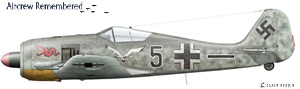 | 48 | Born, Heinz | Lt (post-mortem) | 1921/01/06 (CK) | Magdeburg (CK) | 5 | 9./JG 1 (08/42), 1./JG 11 (05/43), 3./JG 11, 9./JG 11 (02/44) | Fw 190A-4/Y Werknr 5548 (20% dam 11/01/43), Fw 190 A-3 "Yellow 11" in 9./JG 1 | EK 1 & 2 ![]() at least Fighter Operational Clasp in Bronze | KilledInAction (KIA) 4 May, 1944. Injured in a landing accident in Wk# 5548 on 11 January, 1943 at the Frederikshavn airfield, cause, pilot error or a servicing fault (Source: Air War over Denmark). One known victory, his 1st a Reconnaissance Spitfire of 1 PRU, piloted by Belgian Andre Cantillion, SW of Jüderoog on 17 August, 1942. His 2nd, a B-17 on 15 May, 1943 while in 1/JG-11. His 3rd, a B-17 SE of Nordhorn on 10 February, 1944. His 4th, another B-17 at Diepholz-Sulingen on 6 March, 1944. His 5th, a B-24 at Triberg-Rottweil on 18 March, 1944. Added: Promo to Lt postmortem on 09/05/44 (CK)