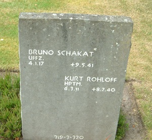 | 89 | Ender, Gerhard | Lt (post-mortem) | 1910/06/17 (CK) | 6./KG 55 | He 111 P-4 "G1 + FP" Werknt 3000 (lost) | KilledInAction (KIA) 9 May, 1941 when he attempted a belly landing at Long Riston after being damaged by a British Defiant Night Fighter. The fighter set fire to the port engine, stopped the starboard engine and killed Ender. Remaining crew: Fw Heinrich Müller, Observer (POW), Uffz Bruno Schakat (born 04/01/1917 (CK), wireless operator (KilledInAction (KIA)) and Fw Georg Schopf, mechanic (POW). The remaining crew bailed. Schopf went out at 900 feet and broke his neck landing, but survived. Schakat was less fortunate, his chute tangled on the AC, and he was dragged to his death as the AC crashed. Müller intended to jump, but his chute opened before he could evacuate the plane, so he opted to make the force landing himself, and did so, coming down in a field within yards of the farmhouse of Walter Kirkwood. His injuries from the landing caused him to remain in the hospital for five months. Ender and Schakat lie in the German Military Cemetery at Cannock Chase (Block 3 Reihe 10 Grab 315, Schakat Block 3 Reihe 20 Grab 319 (CK).