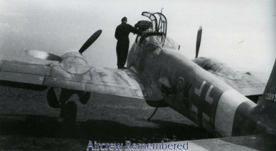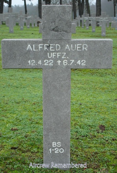 | 17 | Auer, Alfred | Uffz | 4/12/1922 | Krumnussbaum (CKönig) | 4/JG-1 (7/42 Woensdrecht) | Fw 190A-2 Werk # 0336 "CM + EF" (lost 7/6/42) | Fighter Operational Clasp | KIC 6 July, 1942 when his A-2 crashed at Woensdrecht airfield due to engine failure. Buried Ysselsteyn, BS/1/20. This had been the AC of Uffz Günther Kirchner. |