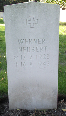 | 6 | Adler, Günter | Lt | 8/3/1916 | 9/KG-26 | He 111H-5 Werk # 3947 "1H + GT" (Lost 7/8/41) | Bomber Operational Clasp | KilledInAction (KIA) 8 July, 1941 when his ac failer to return from a mission to Birmingham. Remaining crew: Ofw Werner Klotz, Obs (dispo unk, no VDK listing); Fw Erich Ehrenstein, R/O (KilledInAction (KIA)) and Fw Leopold Theinert, Gnr (MIA). Two of the deceased are buried in Germany, Blk C of the War cem. at Norderney, En.-Luth Friedhof: Lt Adler Gr 44 and Ehrenstein Gr 25. Norderney is one of the East Frisian Islands off the North Sea coast of Germany, suggesting this may be where their bodies washed ashore. Fw Theinert listed by the VDK as "in a sea grave", and commemorated on the Kiel-Laboe Naval Memorial (D.DRury). | |||||